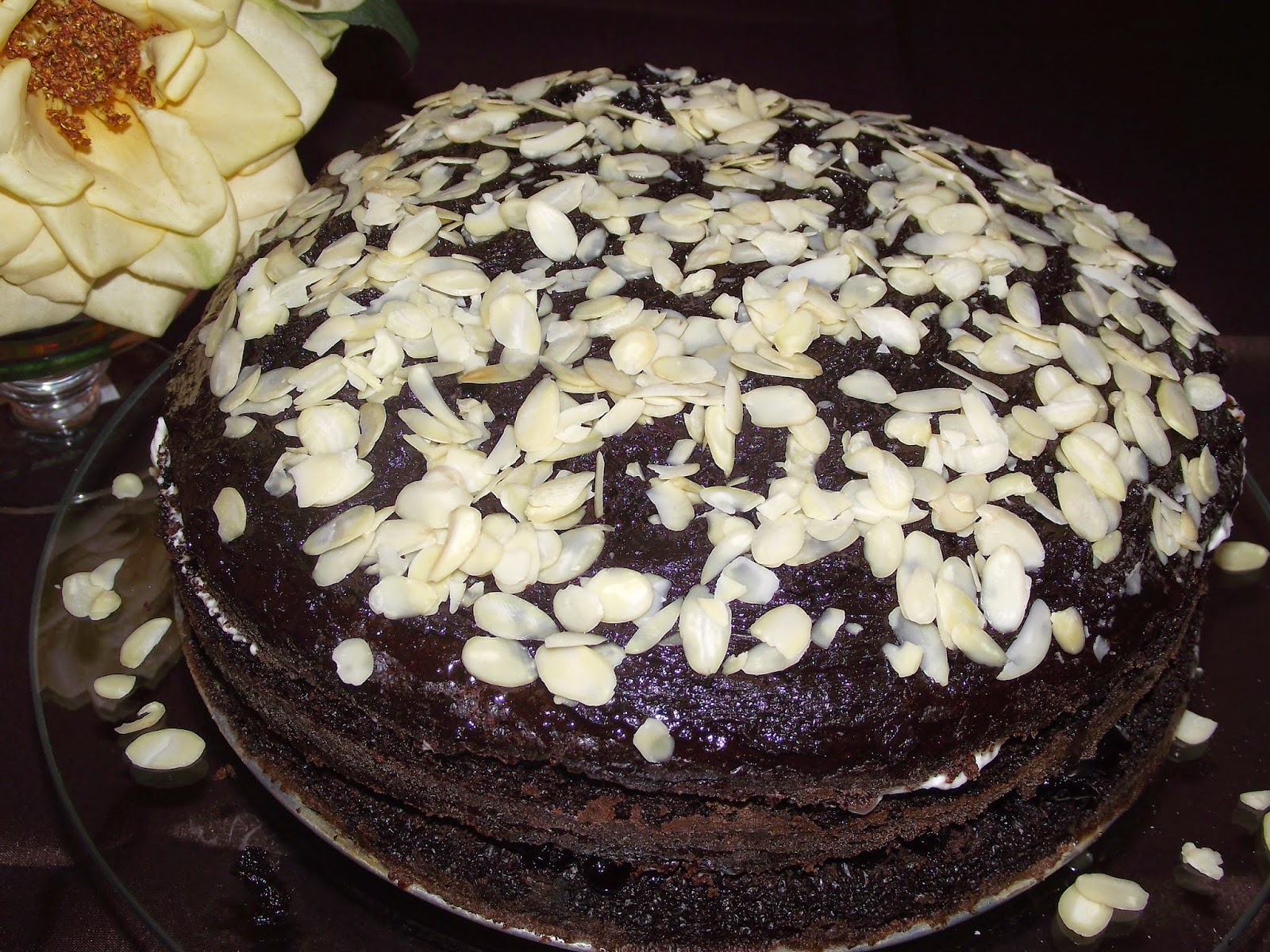 Obsypujemy murzynka płatkami migdałowymi i gotowe.